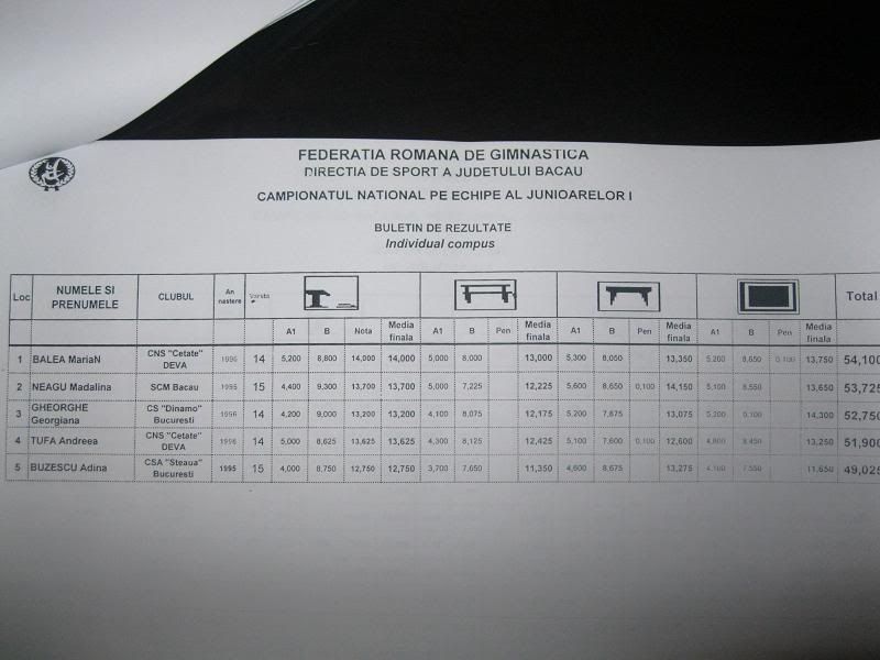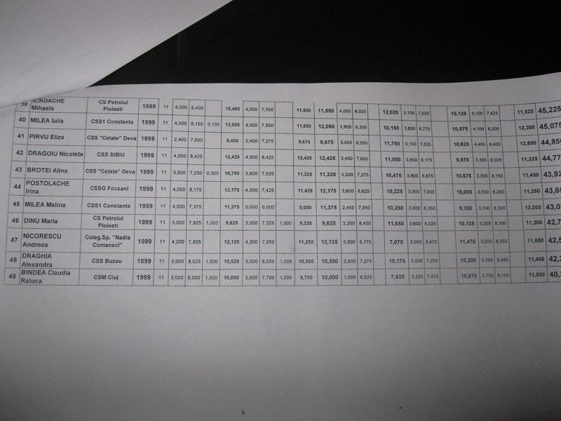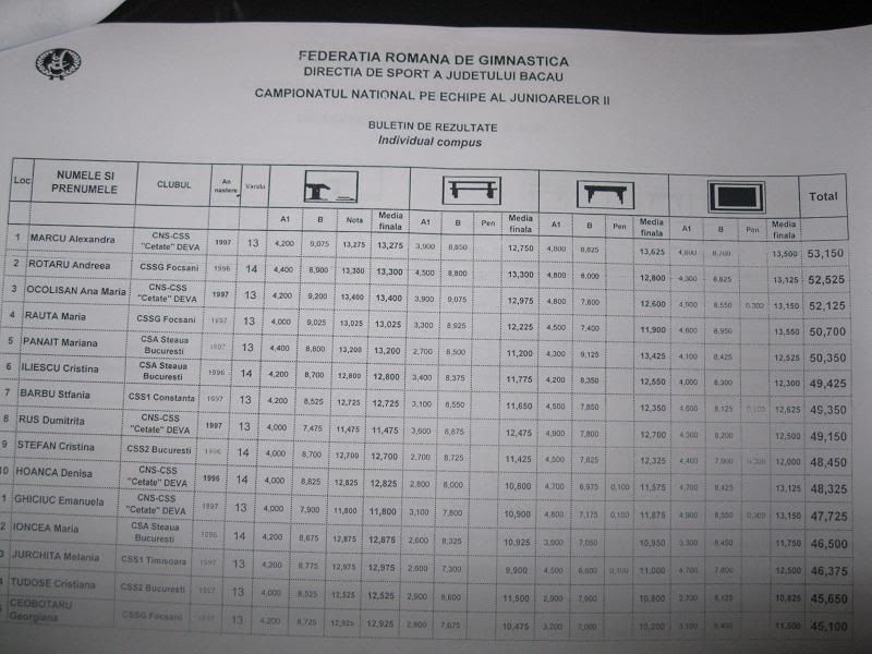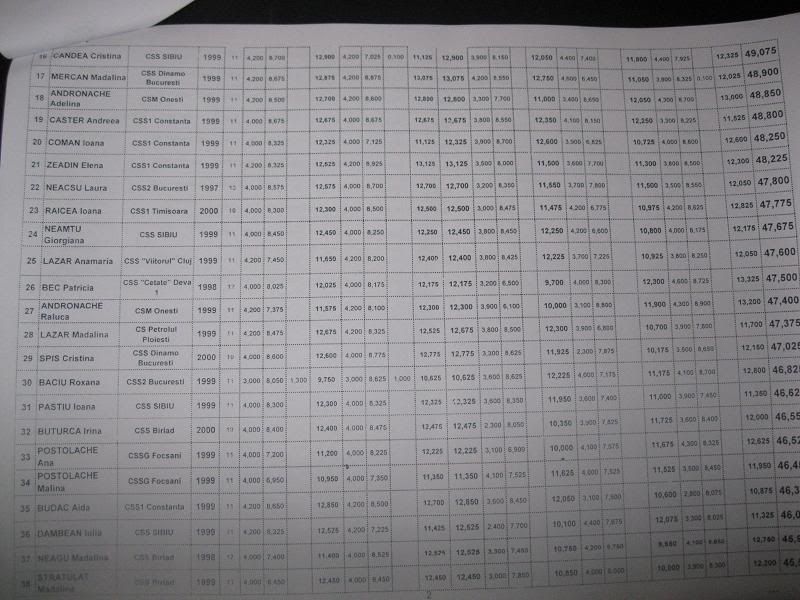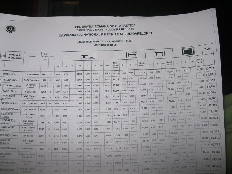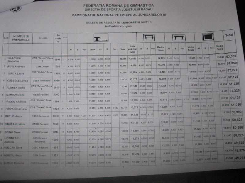 Junioare III nivelul 3 individual locurile 1-15, locurile 16-38 si locurile 39-49